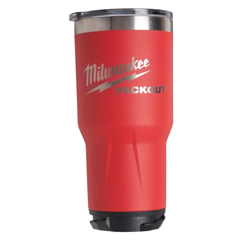 Milwaukeen PACKOUT™ -termosmuki (887 ml), jonka kaksiseinäinen tyhjiöeriste pitää juomat kylmänä tai kuumana koko päivän ajan. Kannessa on magneettinen kiertosulkija. 18/8 ruostumaton teräs parantaa kestävyyttä. Kestää konepesun. Yhden kiinnikkeen kierrelukkomekanismi mahdollistaa mukin kiinnittämisen PACKOUT™-tuotteisiin.