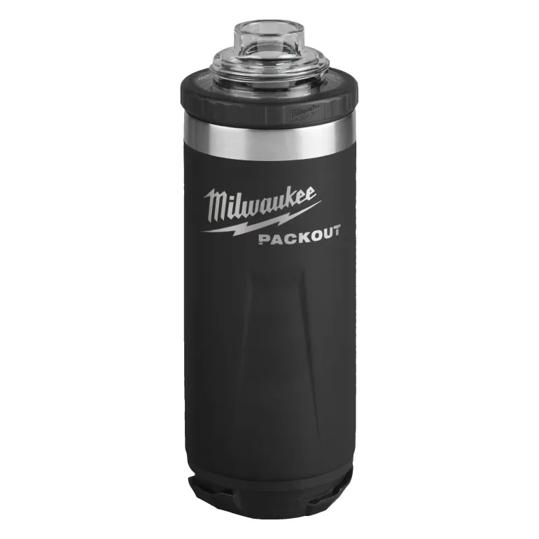 Milwaukee PACKOUT™ -termospullo juomanokalla, jonka kaksiseinäinen tyhjiöeriste pitää juomat kylmänä tai kuumana koko päivän ajan. 18/8 ruostumaton teräs parantaa kestävyyttä. Kestää konepesun. Kannet ovat yhteensopivia kaikkien PACKOUT™ -termospullojen ja kahvallisten termosmukien kanssa.