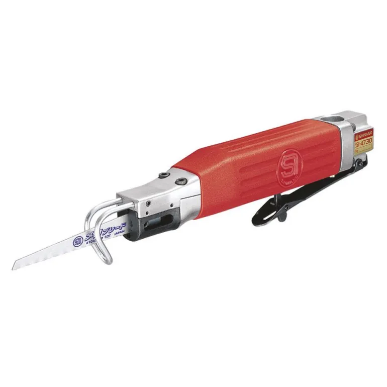 Paineilmasaha vaativiin töihin, kuten vankan metallilevyn, metallirakenteiden ja muovin sahaukseen. Teho siirretään roottorista sahanterään heilurilla, terä ”ei koskaan pysähdy”. Sahanterä, malli 3845.