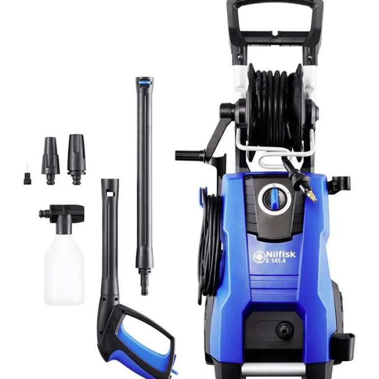 Nilfisk E145.4-9 X-TRA:ssa on ergonominen muotoilu ja 9 metriä pitkä, korkeapaineletku aina hauraiden pintojen hellävaraisesta puhdistamisesta tehokkaaseen lian poistamiseen. Se on myös varustettu tärkeillä toiminnoilla pitkäkestoista työtä ajatellen, kuten teleskooppikahvalla, vahvoilla pyörillä, pitkällä korkeapaineletkulla, käsikäyttöisellä letkukelalla, sekä kumisuspensiolla, joka tekee koneesta erittäin hiljaisen.