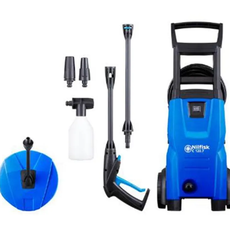 Nilfisk C 120.7-6 PC EU on kevyt ja kompakti korkeapainepesuri, jonka pumpun enimmäispaine on 120 baaria ja veden määrä jopa 440 l/h. Painepesuria on helppo käyttää, ja se on ihanteellinen puutarhan, pienten tai keskisuurten terassien sekä autojen, polkupyörien ja puutarhakalusteiden peruspuhdistukseen. Kone on helppo säilyttää, ja siinä on kätevä säilytystila suuttimille, pesuputkelle ja ruiskupistoolille.