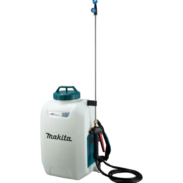 Makita DUS158Z on selässä kannettava 18 V:n paineruisku, jonka tilavuus on 15 litraa ja maksimipaine 3 bar. Helppo asentaa ja helppo kuljettaa. Varustettu kahdella suuttimella. HUOM! Toimitetaan ilman akkua ja laturia.