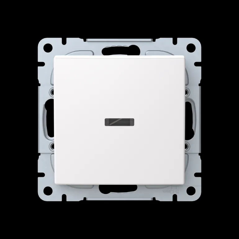 SAGA™-tuotesarjan 1-vipuinen painike jousikiinnitteisellä vivulla ja jousiliittimin. Liittimiin voi kytkeä max. 2 johdinta ja ne on hyväksytty ML- ja MK-johtimille. Ruuvikiinnitys.