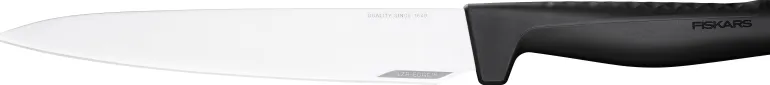 Fiskars Hard Edge -paistiveitsessä on suora ja pitkä, ruostumattomasta teräksestä valmistettu terä. Ohut veitsenterä sopii täydellisesti paistin käsittelyyn ja vuolemiseen.