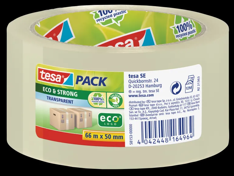 Vankka ja ekoneutraali Tesa-pakettiteippi, joka takaa pakkausten turvallisen sulkemisen. 100 % laatua, 100 % kierrätysmuovia.