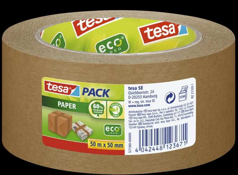 Tesa-paperiteippi. Vankka ja ympäristöystävällinen kartonkien, laatikoiden ja kirjekuorien sulkemiseen.
