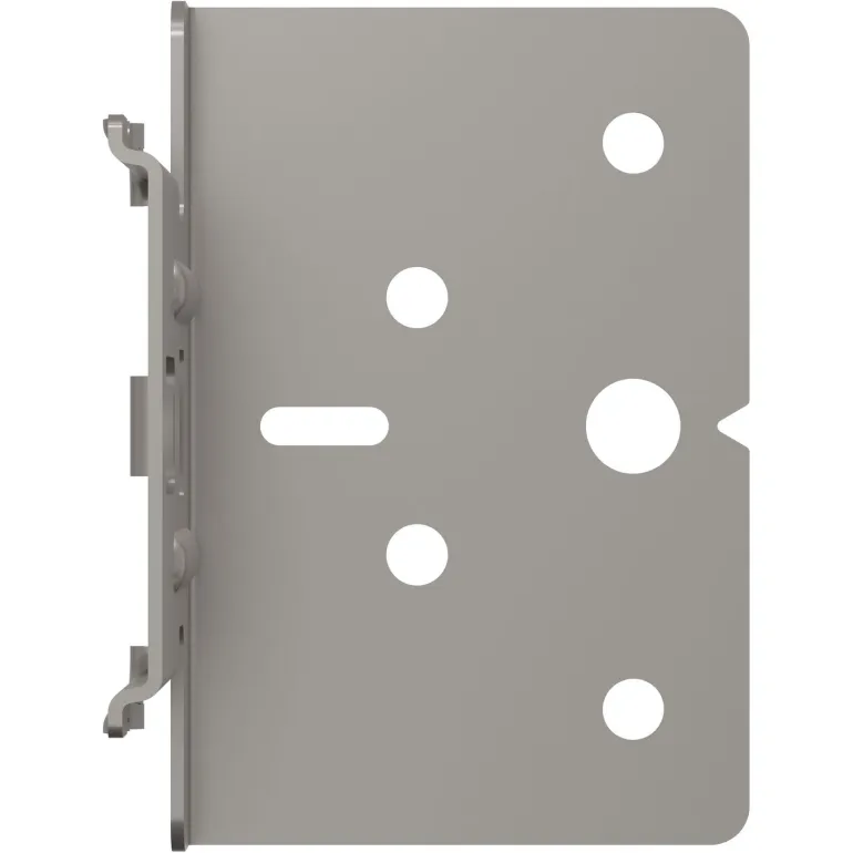 Teräksinen palkkikiinnike asennusta varten edestäpäin teräs- tai puupalkkeihin. Napsahtaa koje-/liitäntärasian sivulle.