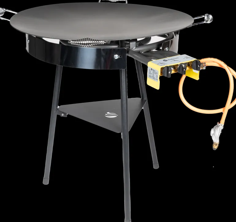 Täydellinen pannu-/kaasupoltinsetti hieman suuremmalle seurueelle. Setti sopii hyvin kotikäyttöön, mökille tai vaikkapa juhliin tai mukaan retkeilyyn. 78 cm -malli (pannun halkaisija) palvelee vaivatta jopa 15 hengen kokoista seuruetta. 78 V2 -malli on päivitetty värimerkityllä säätönupilla, kiinteäasentoisilla säätimillä, mattapintaisella tyylikkäällä kaasupolttimella sekä ennen kaikkea uudella tukevammalla rakenteella, joka mahdollistaa helpon kokoamisen. Kaasupoltinsetti on myös varustettu käytännöllisellä sivutasolla.