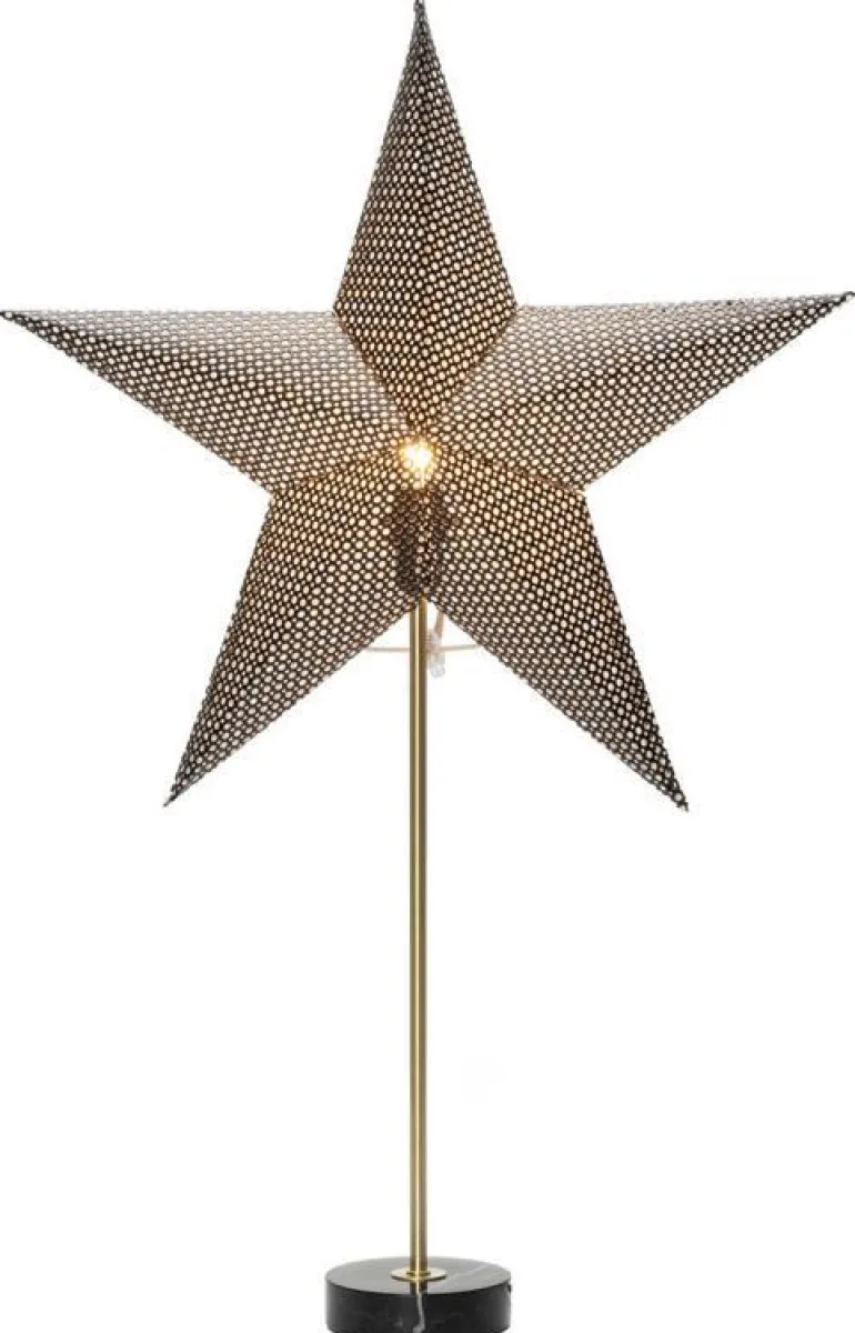 Konstsmide 1760-770 on musta paperitähti marmorijalustalla (musta). Lampun kanta E14. Musta johto, 230 V.