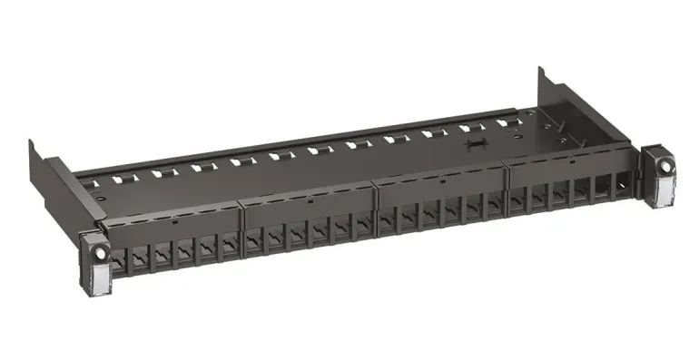 Ulosvedettävä Patch-paneeli vakiona 24 Actassi S-One DPM RJ45 pistorasiaan. Paneeli on varustettu Quick Fix pikakiinnityksellä, jonka