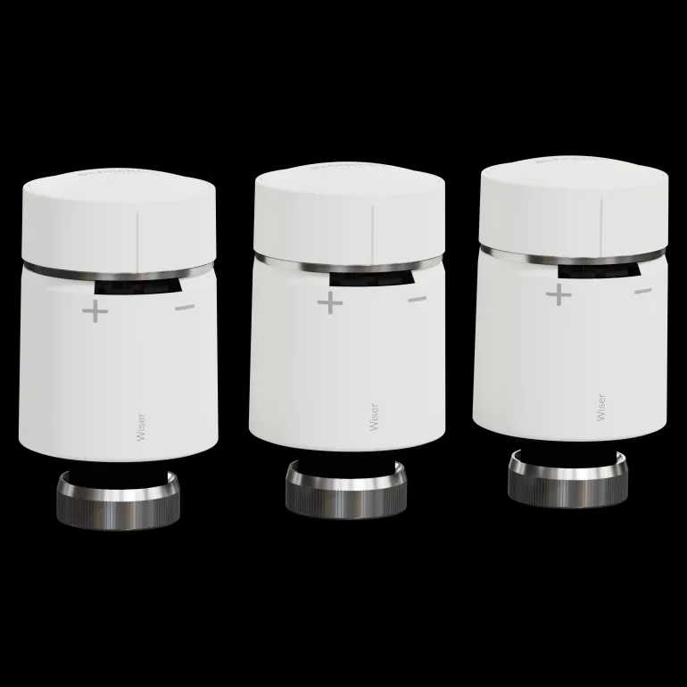 Schneider Electric CCTFR6908WA Wiser -laajennuspakkaus, joka sisältää kolme patteritermostaattia. Vesikiertoisten pattereiden lämmityksen ohjaukseen.