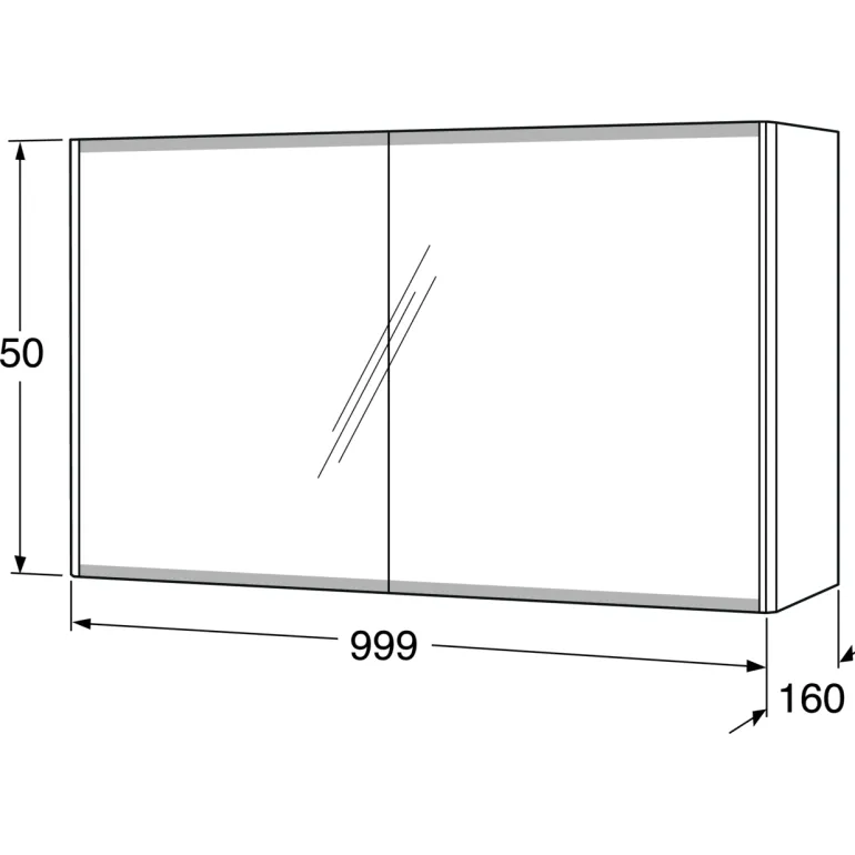 Gustavsberg Graphic on peilikaappi, jossa on kaksipuoliset peiliovet, peileissä on huurrepinta alareunassa, mikä tasoittaa näkyviä rasvatahroja. Kaapissa on kaksi siirrettävää lasihyllyä ja pehmeästi sulkeutuvat ovet.