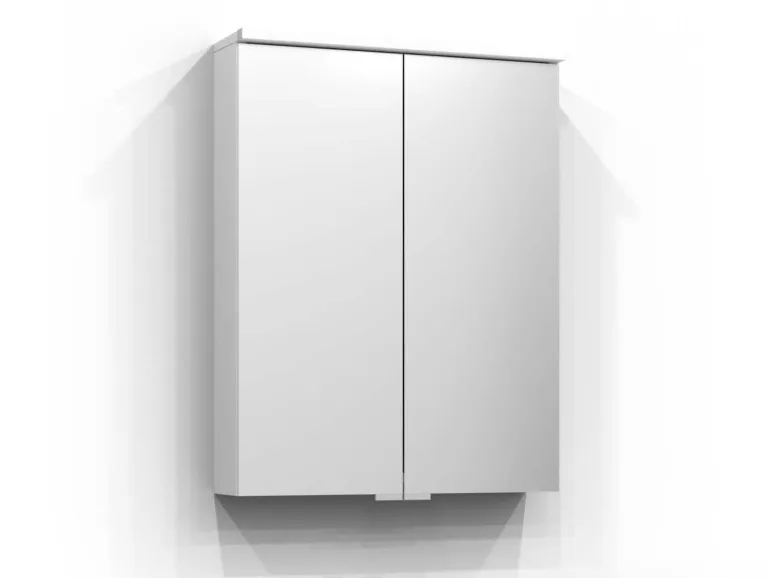 Svedbergs Sarek 55 on valkoinen peilikaappi peiliovilla. Lasihyllyillä. Materiaalina kosteussuojattu kalustelevy (MDF).