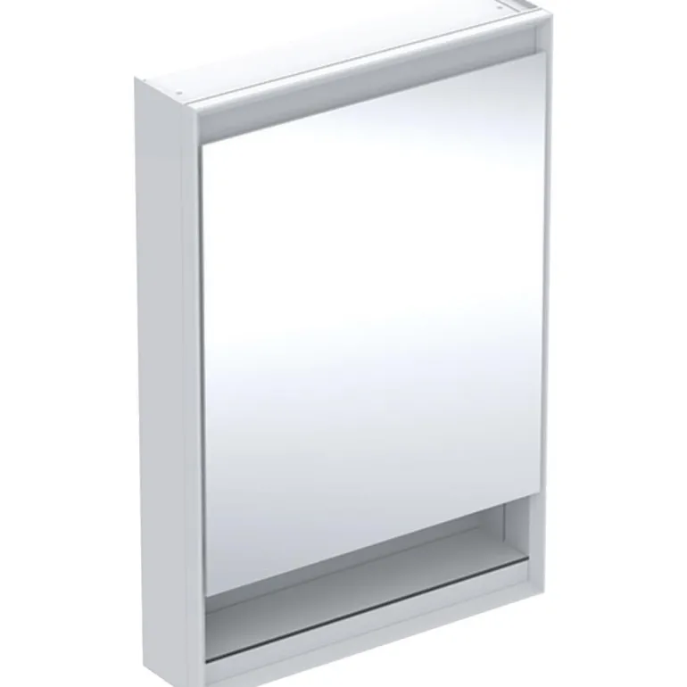 Uusi Geberit ONE -peilikaappi on saatavana viidessä eri koossa seinään integroituna tai pinta-asennettavana versiona. Pinta on eloksoitua alumiinina, valkoinen tai kokonaan peililasia, ja valittavana on myös valaistu syvennys. Uuden Geberit ONE -peilikaapin kohokohta ja todella ainutlaatuinen innovaatio on integroitu valaistuskonsepti. ComfortLight on suunniteltu niin, että eri valonlähteet luovat aidon, varjottoman peilikuvan, ja jopa koko kylpyhuone voidaan valaista tällä tavoin.