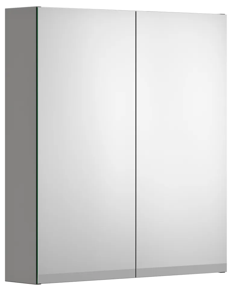 Tuhkanharmaa peilikaappi kahdella kaksipuolisella peiliovella Gustavsbergiltä, 60 cm. Alareunat on huurrettu, jotta peiliin ei jää rasvatahroja.