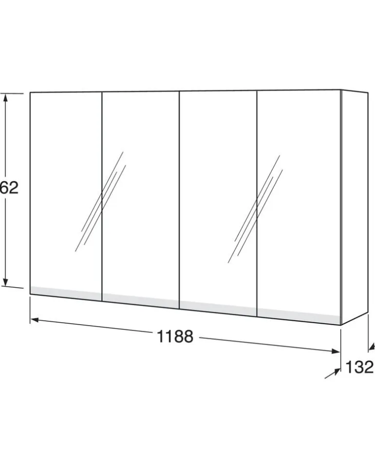Gustavsbergin Artic-peilikaappi 120 cm kaksipuolisilla peiliovilla (4 peiliovea) ja kahdella siirrettävällä lasihyllyllä.