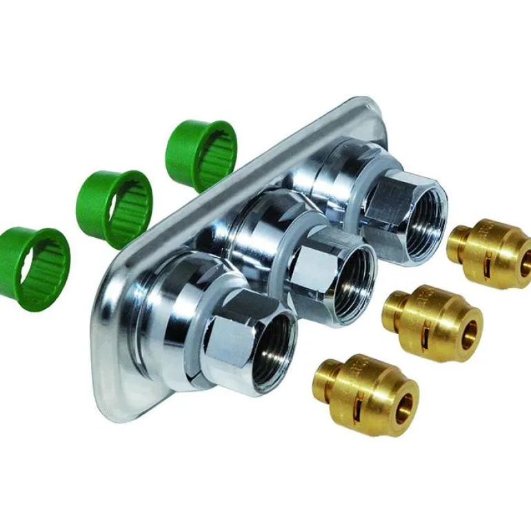 Vatette 1877945 on 3 putken 40 c/c peitelaippa käytettäväksi Vatette-seinäkiinnikkeen kanssa, 15 mm Vatette-liittimen/-palloventtiilin liittämiseen. Peitelaippa on PEX-, PE-RT- ja PB-putkille.