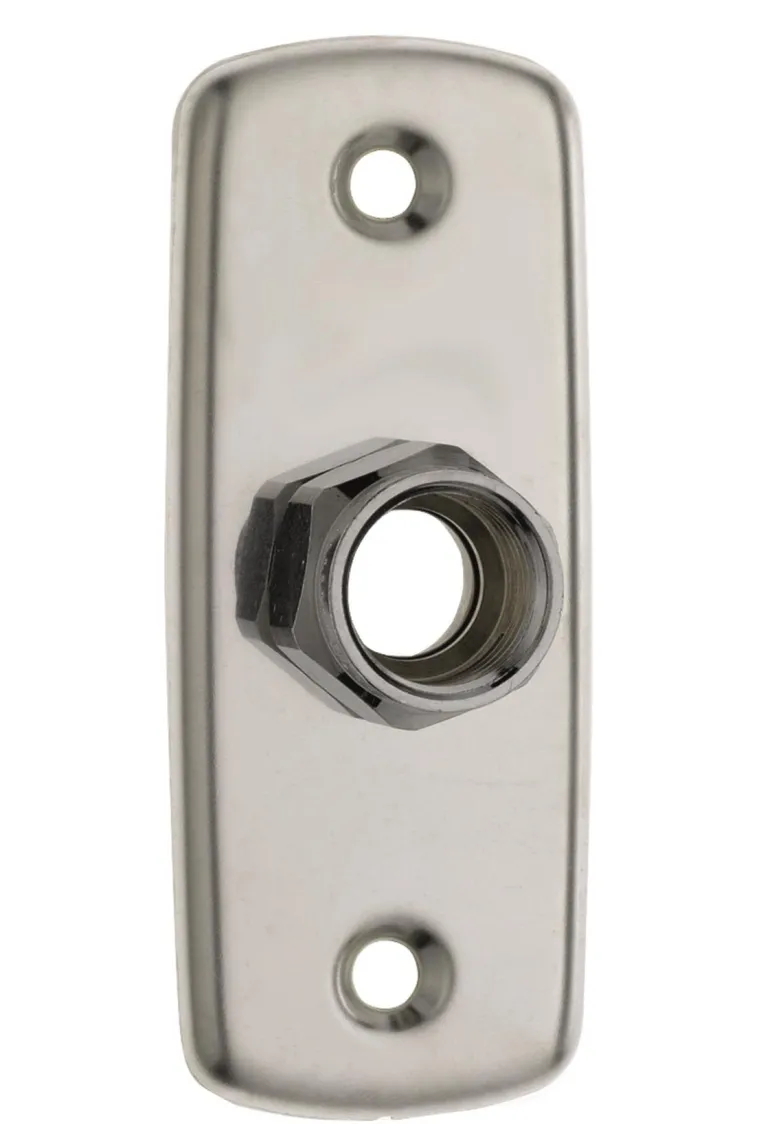 Ruostumattomasta teräksestä valmistettu yksinkertainen peitelaippa (1-reikäinen) A-kuulalle ja A-liittimelle. 12 kupariputkelle. Laipan mitat ovat 110 x 45 (K x L) ja siinä on sisäinen G10-kierre. Sisältää kytkentäsarjan.