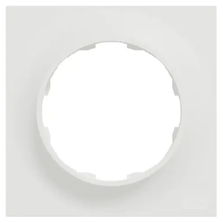 ELKO One 1-kehys, valkoinen. Tuotteen mitat ovat (W) 87 mm x (K) 87 mm x (S) 10,5 mm. Se on valmistettu kierrätetystä polykarbonaatista (PC). Mattapinta.