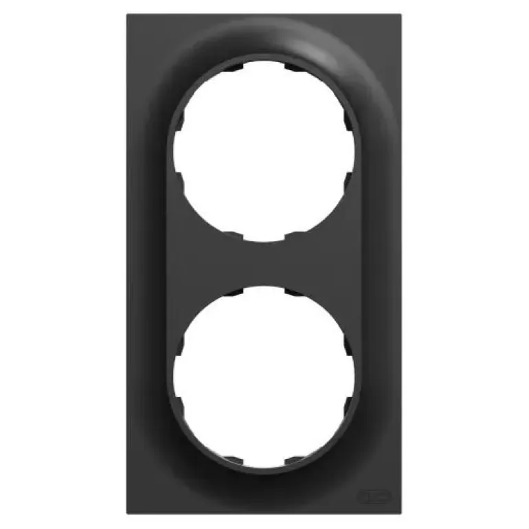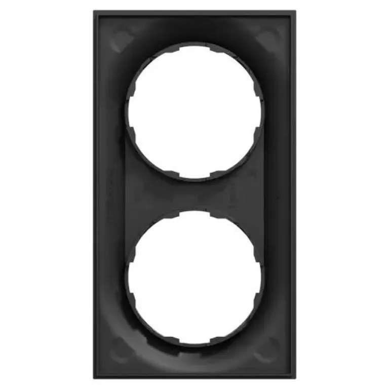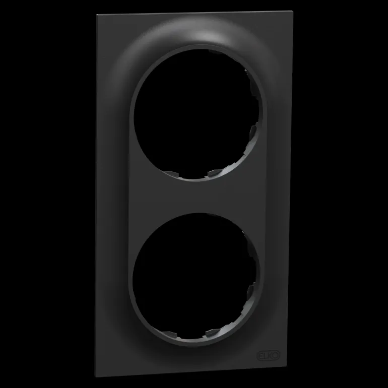 ELKO One 2-kehys, jonka mitat (L) 87 mm x (K) 158 mm x (S) 10,5 mm. Se on valmistettu kierrätetystä polykarbonaatista (PC). Tuotteen väri on musta (RAL 9005) ja se on mattapintainen. Se saavuttaa IP21-suojaustason.