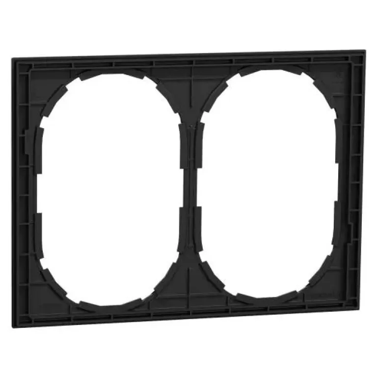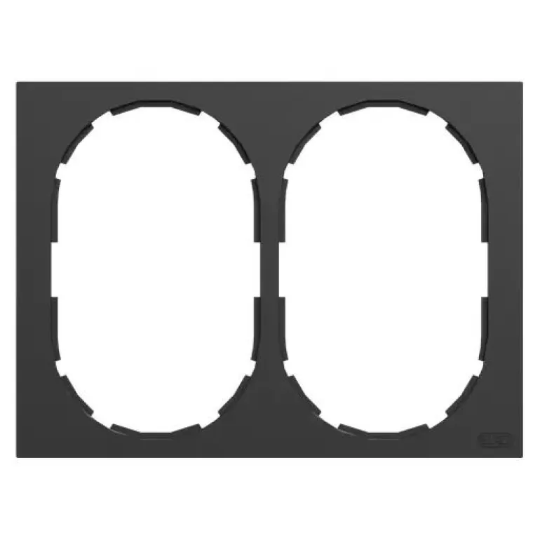 ELKO One 2-kehys 2-pistorasialle. Tuotteen mitat ovat (L) 158 mm x (K) 117 mm x (S) 5 mm. Se on valmistettu kierrätetystä polykarbonaatista (PC). Tuotteen väri on musta (RAL 9005) ja se on mattapintainen. Se saavuttaa IP21-suojaustason.