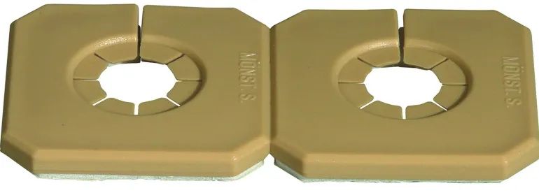 Jaettava kaksinkertainen peitelevy ruskeaa muovia, putkille, joiden halkaisija on 15-22 mm.