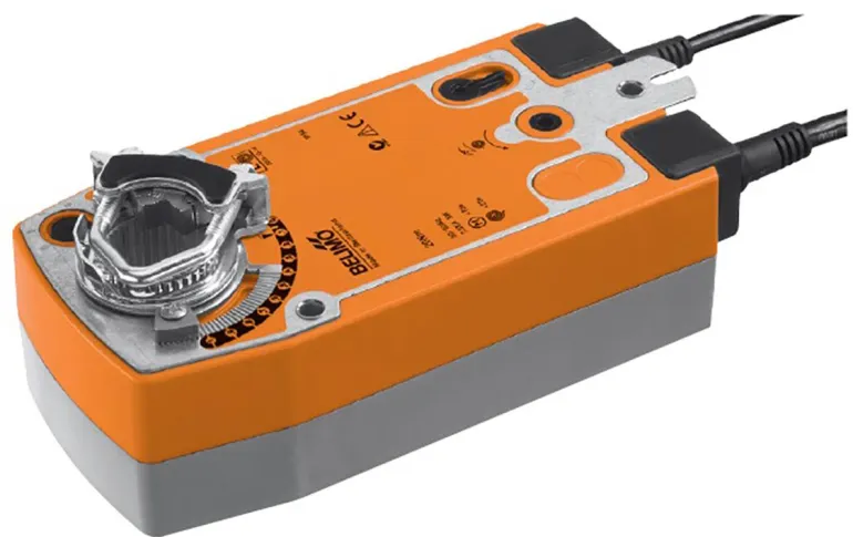 Jos syöttöjännite katkeaa, jouseen varastoitunut energia vapautuu, mikä palauttaa moottorin turva-asentoon. Helppo suora-asennus pellin akselille yleiskiinnikkeellä kaksinkertaisella liitoksella. Moottorin pyöriminen estetään mukana toimitetulla kiertosuojalla. Pellin asennon manuaalinen asetus suoritetaan mukana toimitetulla kammella. Moottori voidaan lukita valittuun asentoon rajoitinkytkimellä.