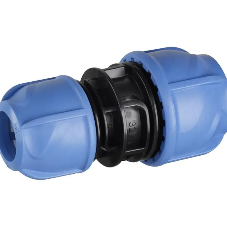 PEM-liitin, materiaalina polypropeeni (PP). Suora muoto ja putken ulkohalkaisija 25 x 20 mm. REACH-hyväksytty PP.