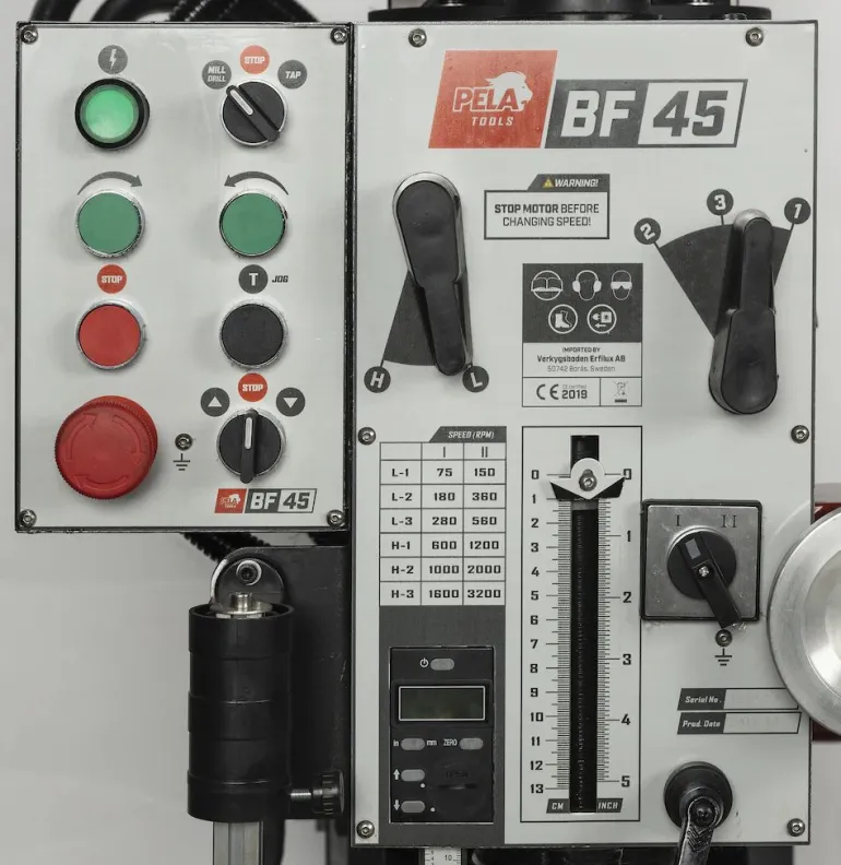 PELA BF45 on penkkijyrsinkone ja porakone. Ilman digitaalisia laskureita.