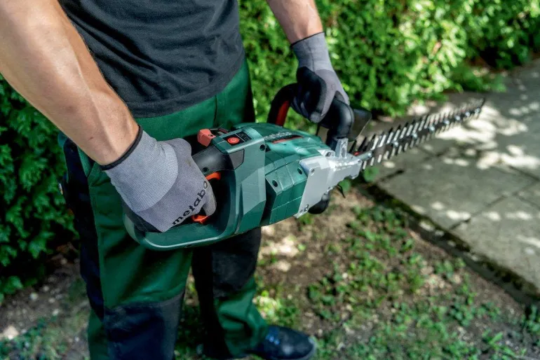 Voimakas akkupensasleikkuri harjattomalla moottorilla. HS 18 LTX BL 65 on varustettu käännettävällä kahvalla ergonomista ja miellyttävää työskentelyä varten. Pensasleikkuri leikkaa hyvinkin tehokkaasti ja tarkasti kaksoisleikkuuteknologian ansiosta: terän molemmilla puolilla laserleikatut ja timanttihiotut terät kahdessa rivissä. Kahva on käännettävissä (viisi eri asentoa) sopivaa työskentelyasentoa ja joustavampaa käsittelyä varten. Ergonominen lisäkahva antaa hyvän otteen ja kaksin käsin toimiva turvakytkin lisää turvallisuutta.
