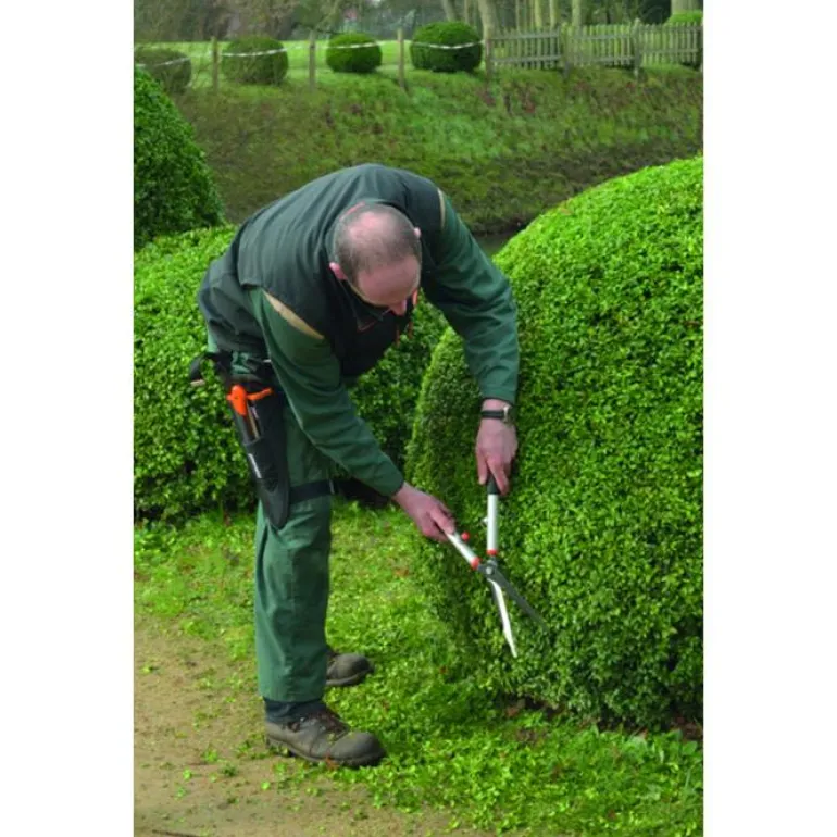 55 cm pitkät pensassakset, joissa on kevyet ja kulutusta kestävät alumiiniset varret, miellyttävät muovikahvat. Läpikarkaistut terät ovat kapeat ja suorat. Sileät reunat jättävät erittäin siistin leikkausjäljen Terän pituus on 22,5 cm.