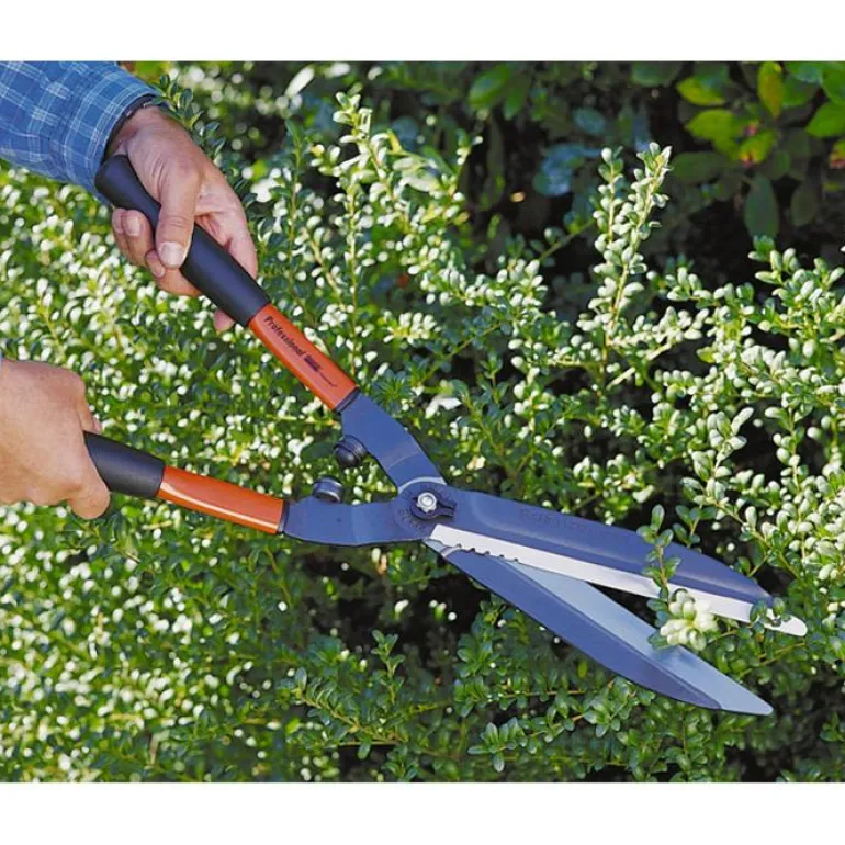 Pensassakset, joissa on mukavat, kevyet ja erittäin hyvin kulutusta kestävät teräskahvat ja 25 cm pitkät terät, jotka jättävät siistin leikkausjäljen. Pehmeät kumivaimentimet vähentävät väsymistä ja parantavat käyttömukavuutta, ja lukitusjärjestelmällä varustettu keskipultti pitää terät täydellisesti oikeassa linjassa.