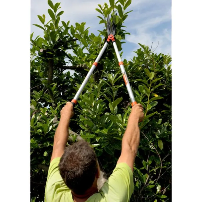 Teleskooppisilla alumiinivarsilla varustetut pensassakset, pituus 80–105 cm. Terien pituus on 20 cm, ja ne on valmistettu läpikarkaistusta teräksestä.