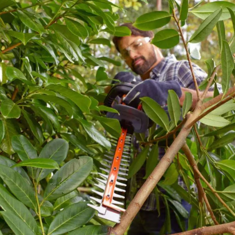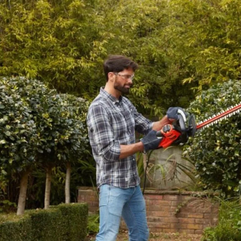 Pensasleikkuri 600 W, terän pituus 60 cm, leikkauspaksuus 25 mm. Pensasleikkurin iskunopeus on 1840 iskua./min ja se soveltuu suuriin pensasaitoihin.
