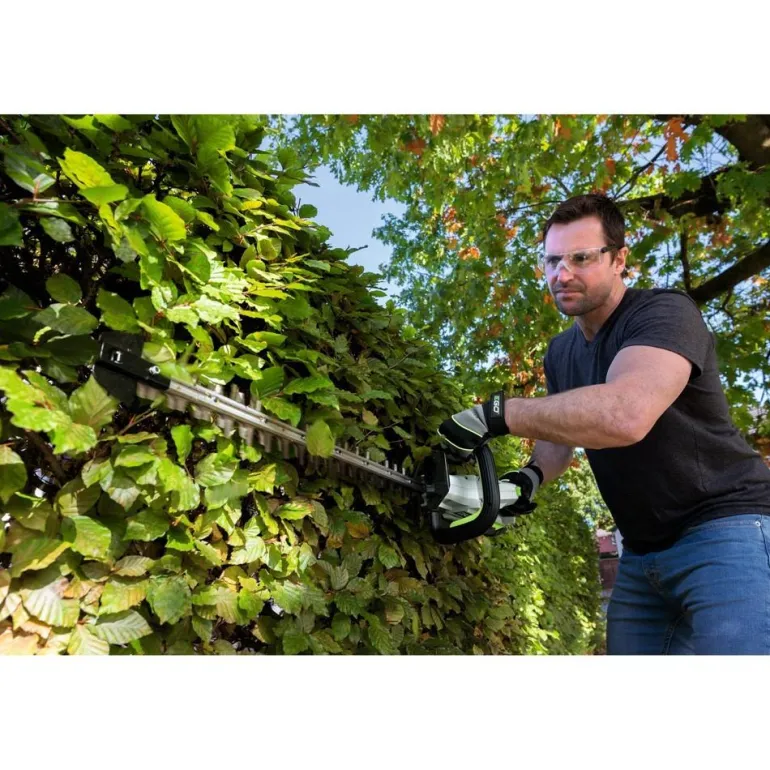EGO HT2410E on 56 V:n pensasleikkuri, jossa on 61 cm pitkä laserleikatuilla ja timanttihiotuilla yksipuolisilla terillä varustettu teräosa ja tehokas hiiliharjaton moottori, joka pitää tämän yleiskäyttöisen mallin EGOn pensasleikkurien huippuluokassa.