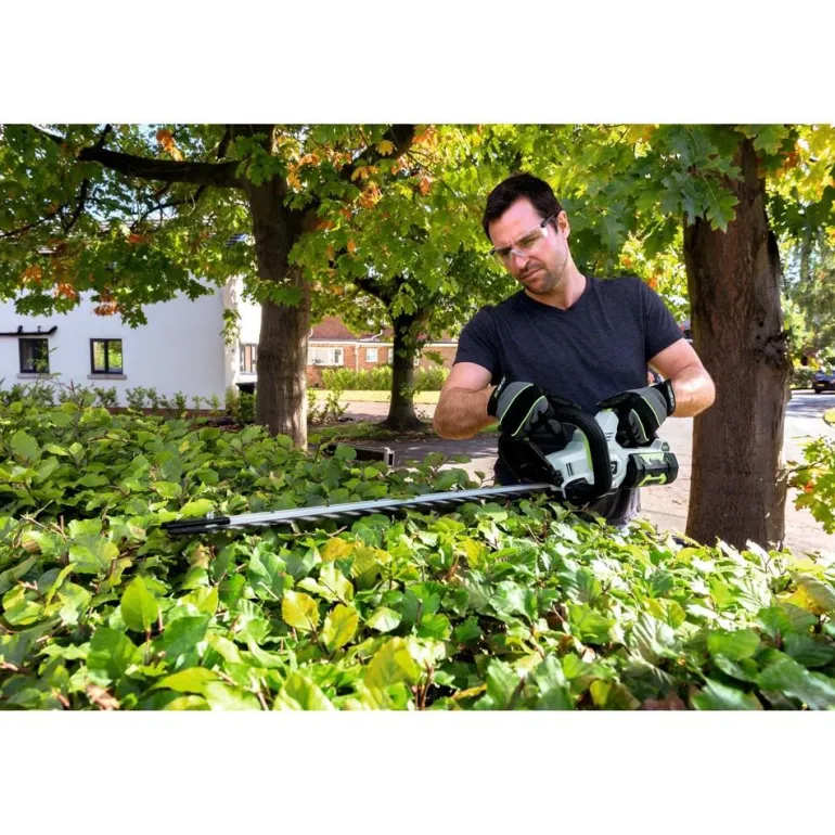 EGO HT2410E on 56 V:n pensasleikkuri, jossa on 61 cm pitkä laserleikatuilla ja timanttihiotuilla yksipuolisilla terillä varustettu teräosa ja tehokas hiiliharjaton moottori, joka pitää tämän yleiskäyttöisen mallin EGOn pensasleikkurien huippuluokassa.
