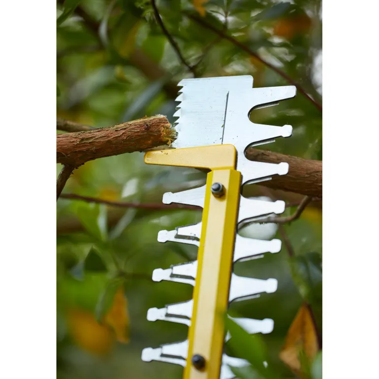 18 V:n pensassakset, jossa on 55 cm pitkä laserleikattu kaksitoiminen sahanterä. Terä leikkaa jopa 35 cm paksujen oksien läpi Power Saw -toiminnolla, joka antaa lisätehoa tarvittaessa.