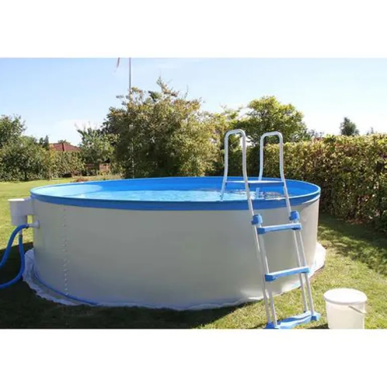Täydellinen perheuima-allas pintapumpulla ja tikkailla – Ø 4,5 x 0,9 metriä. Altaasn tilavuus on 13 500 litraa ja siellä on runsaasti tilaa vesileikeille. Allas on helppo asentaa tukevalle ja tasaiselle pinnalle. Kätevässä kannettavassa pakkauksessa on sähköpumppu ja tikkaat.