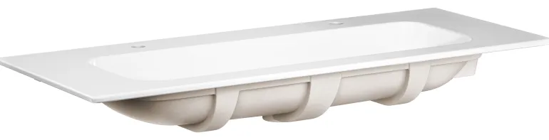 Valkoinen 120 cm:n pesuallas Gustavsbergin Artic-lipastoihin, valmistus alkanut vuonna 2022. Valmistettu posliinista ja varustettu kahdella sekoittimen reiällä.