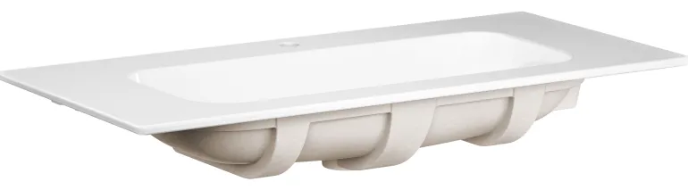 Valkoinen 100 cm:n pesuallas Gustavsbergin Artic-lipastoihin, valmistus alkanut vuonna 2022. Valmistettu posliinista ja varustettu sekoittimen reiällä.