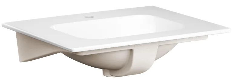 Valkoinen 60 cm:n pesuallas Gustavsbergin Artic-lipastoihin, valmistus alkanut vuonna 2022. Valmistettu posliinista ja varustettu sekoittimen reiällä.