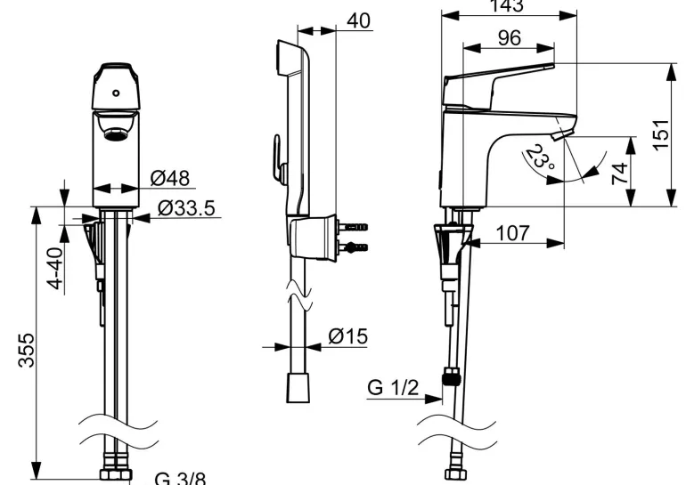 Vivun/Kahvan tyyppi: Ekotoiminto, Kuuma/Kylmä symbolit, Turvatoiminto, Yksi käyttövipu/kahva