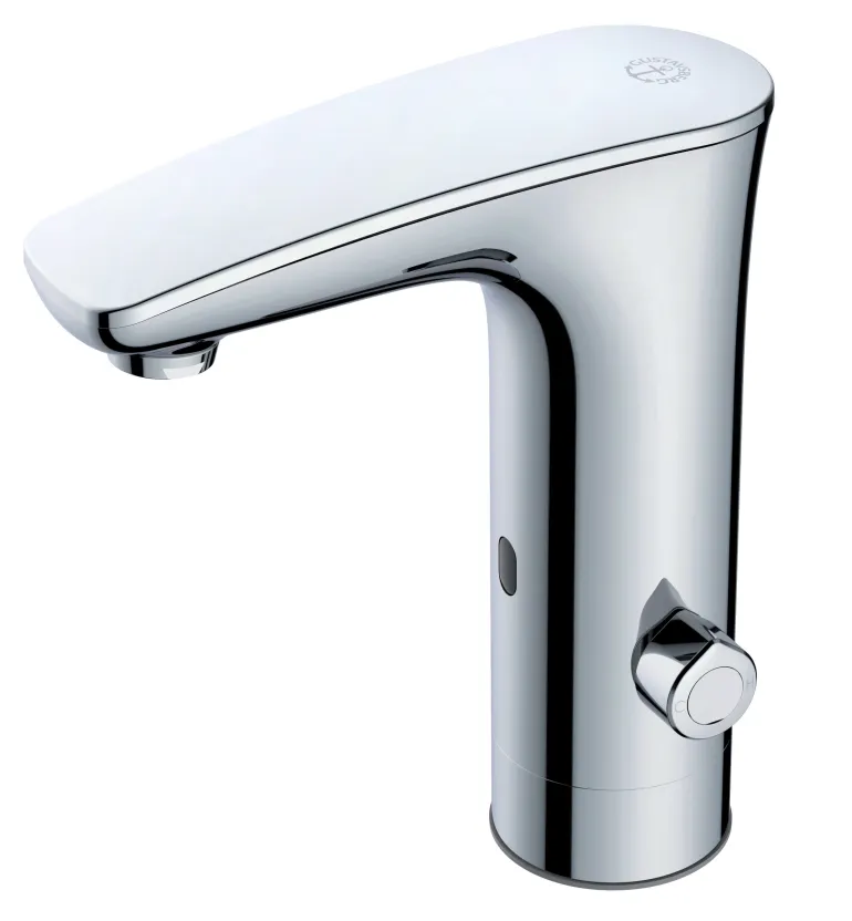 Gustavsberg Sensoric 1.0 -pesuallashana välikerenkaalla ja anturilla. Korkeus tasosta hanan suuttimen alaosaan 160 mm. Sopii yhtä hyvin kotikäyttöön kuin julkisiin tiloihin. Säästää vettä ja energiaa anturin ansiosta.