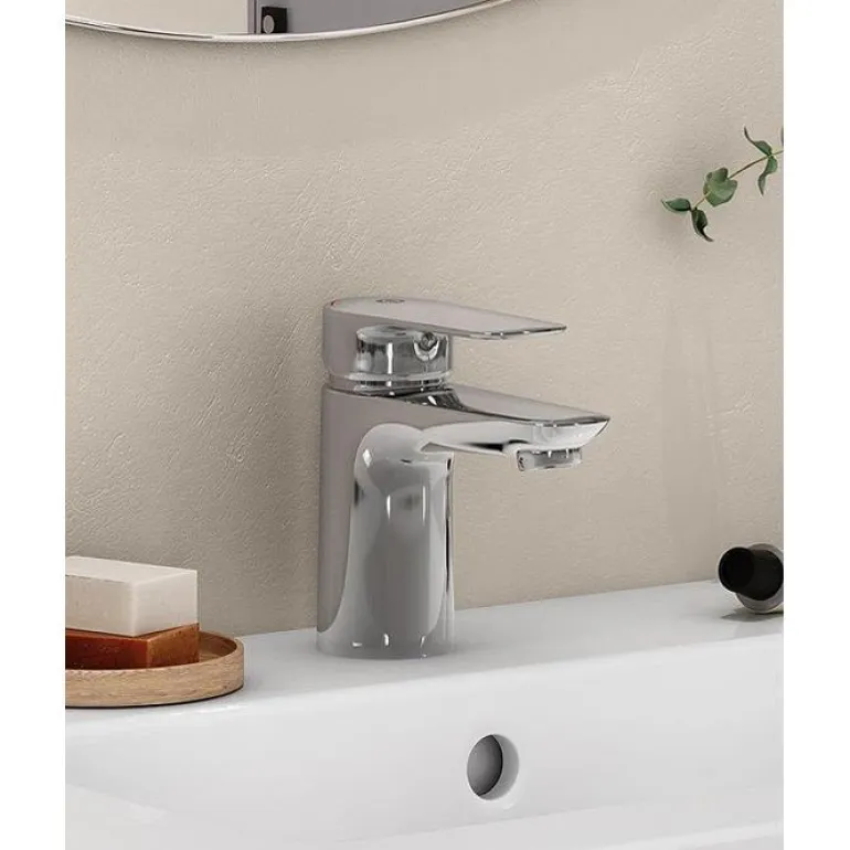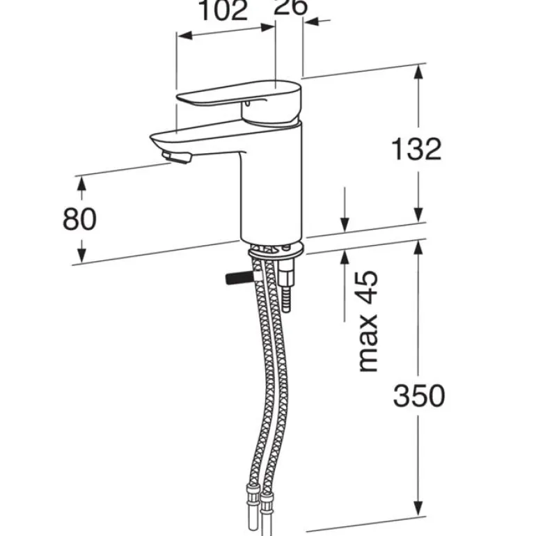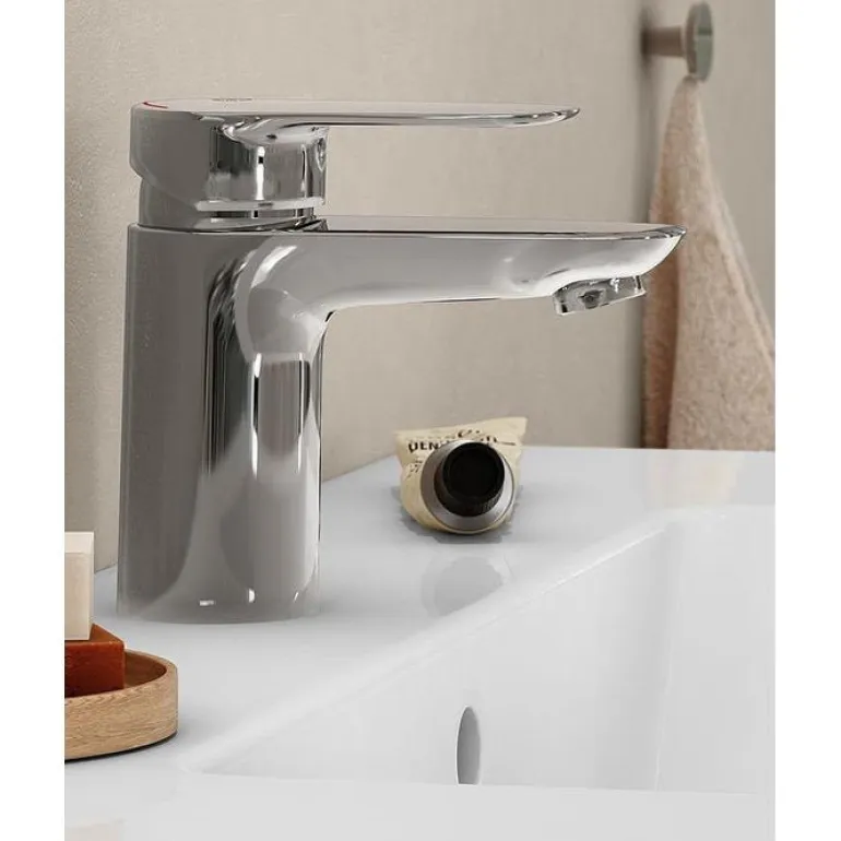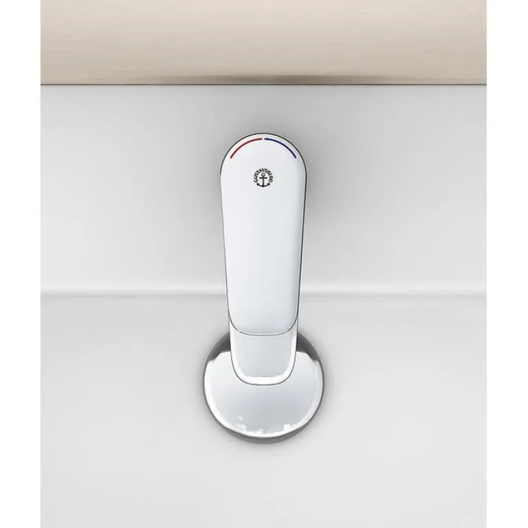 Pesuallashana, jossa on keraaminen tiiviste ja säädettävä enimmäislämpötila. Ilman pohjaventtiiliä. Juoksuputki on kiinteä, ja sen ulkonema on 102 mm.