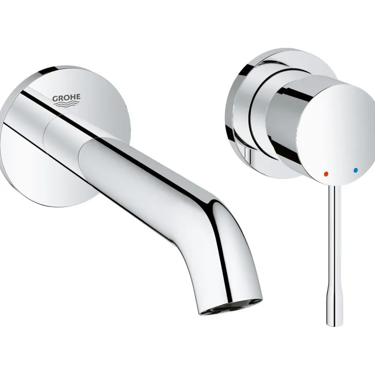 Seinään asennettava kaksireikäinen GROHE Essence -pesuallassekoitin, joka on tyylikäs mutta minimalistisesti suunniteltu. Erillisen 183 mm:n juoksuputken alle jää reilusti tilaa vaivattomaan hiusten pesuun tai korkeiden astioiden täyttöön.
