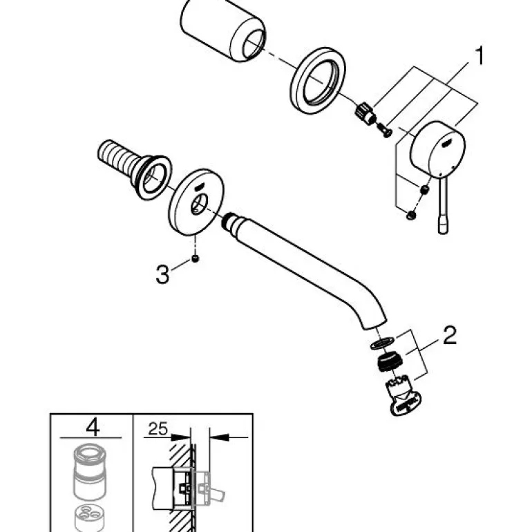 Seinään asennettava kaksireikäinen GROHE Essence -pesuallassekoitin, joka on tyylikäs mutta minimalistisesti suunniteltu. Erillisen 183 mm:n juoksuputken alle jää reilusti tilaa vaivattomaan hiusten pesuun tai korkeiden astioiden täyttöön. Sylinterimäinen muoto ja hohtava GROHE StarLight -kromipinnoite tekevät tästä seinään asennettavasta yksikahvaisesta sekoittimesta tyylikkään kylpyhuoneen katseenvangitsijan. GROHE EcoJoy -vedensäästöteknologia on vain yksi sen kätevistä ominaisuuksista. Sisäänrakennetun GROHE AquaGuiden avulla juoksuputken suihkukulma voidaan asettaa tarkasti. Integroitu GROHE SilkMove -säätöosa tekee veden lämpötilan ja virtauksen säätämisestä helppoa ja tarkkaa.
