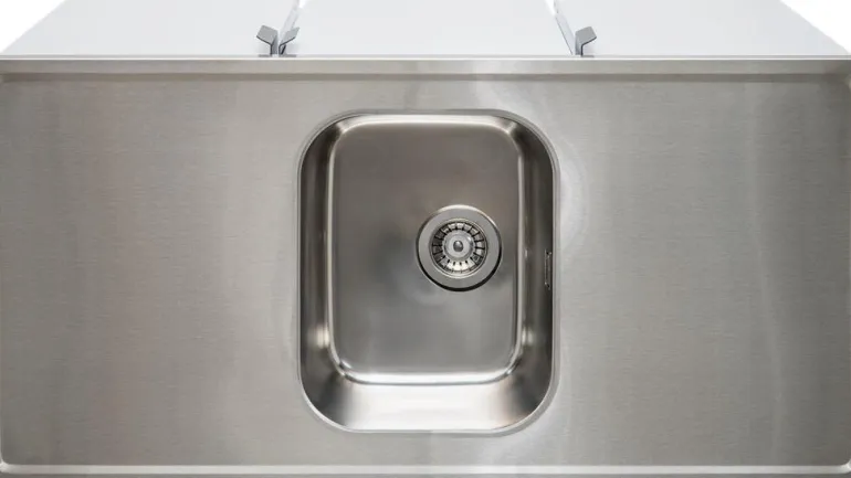 Pesupöytä 1200x600x30 mm allaskaapille Nimo TB 1200. Allas keskellä.