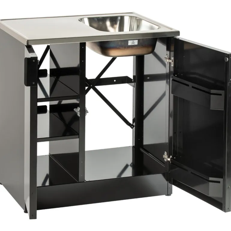 Nimo TB 800 T on pesupöytä, jonka runko ja sen osat pinnoitettua terästä. Mallissa on kaksi ovea, kolme hyllytasoa, tila pesuaineille, kaksinkertaiset säilytyslokerot ovessa (jossa hidastin, piilosaranat ja lapsilukko) sekä täysin integroitu alusta. Lisäksi mukana seinäkiinnike lisävakautta varten, täydellinen viemärisarja sekä säädettävät jalat, joiden avulla korkeutta voidaan säätää.
