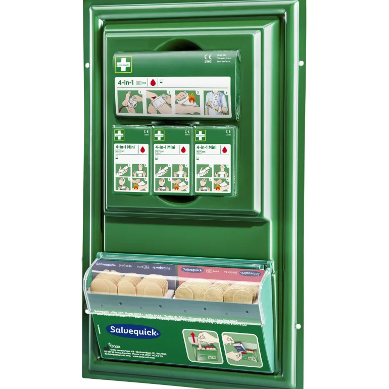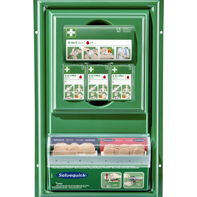 Cederroth-haavanhoitopisteissä kaikki ensiaputuotteet ovat omalla paikallaan, nopeasti saatavilla ja tuotepakkauksissa on selkeät käyttöohjeet. Kun laastari vedetään automaatista, toinen liimapinnoista vapautuu ja laastari on heti käyttövalmis. Taulu sopii pienehköihin tiloihin tai täydentämään muuta ensiapuvälineistöä.