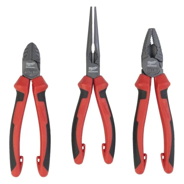 Milwaukee 4932492773 on pihtisarja, joka sisältää yhdistelmäpihdit 180 mm, sivuleikkurit 160 mm ja pitkät kärkipihdit 205 mm.